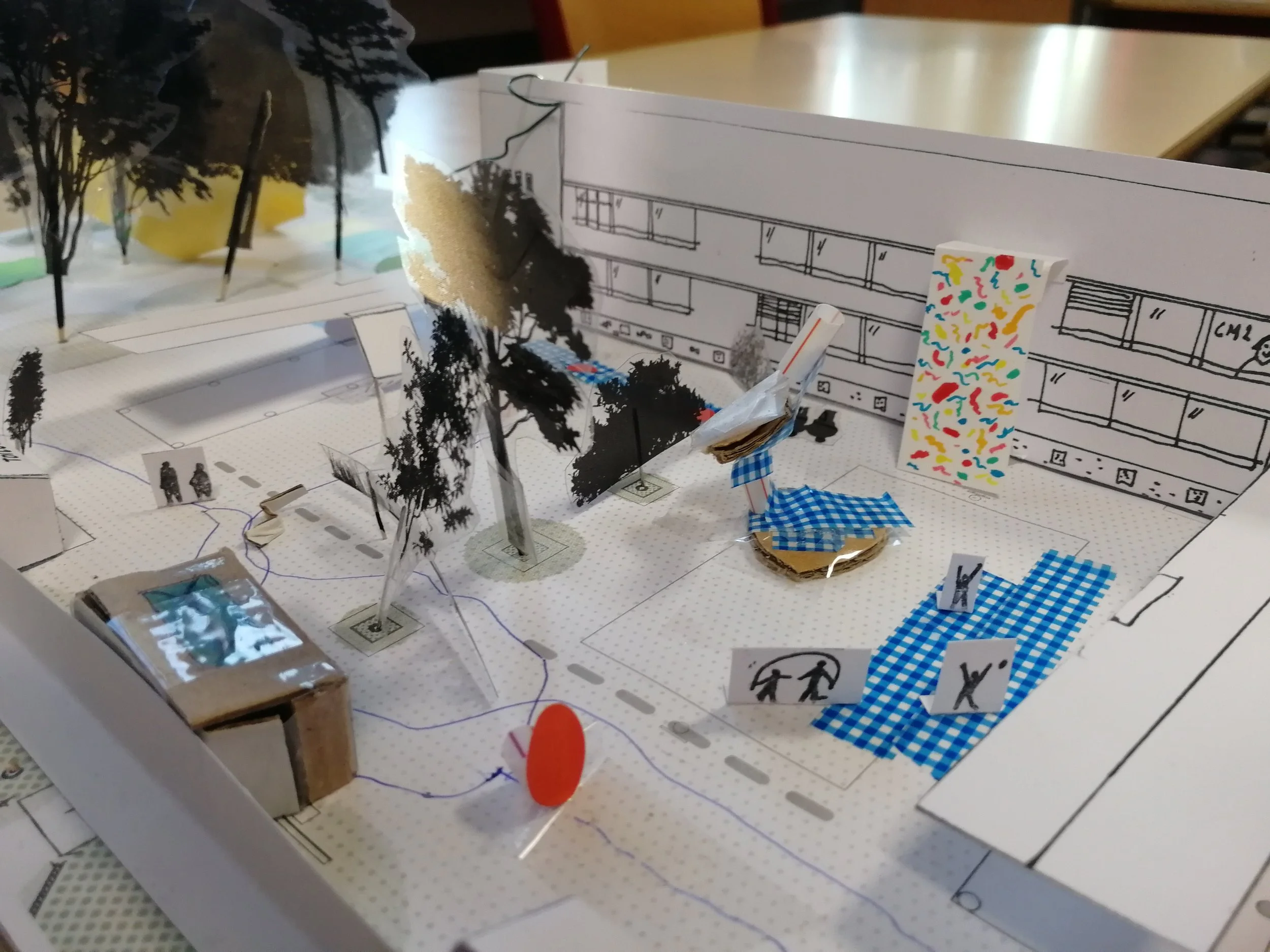 Un diagnostic partagé, incluant tous les usagers de la cour de l’école Jacques Prévert (équipe pédagogique, élèves, périscolaire, élus, services techniques, parents d’élèves) et des ateliers pédagogiques en classe ont permi d’entendre toutes les voix et d’établir un pré-programme commun. Puis, des scénarii d’adaptation illustrés permettent à chacun de se projeter, de faire progresser la discussion et d’éclairer les arbitrages à venir.