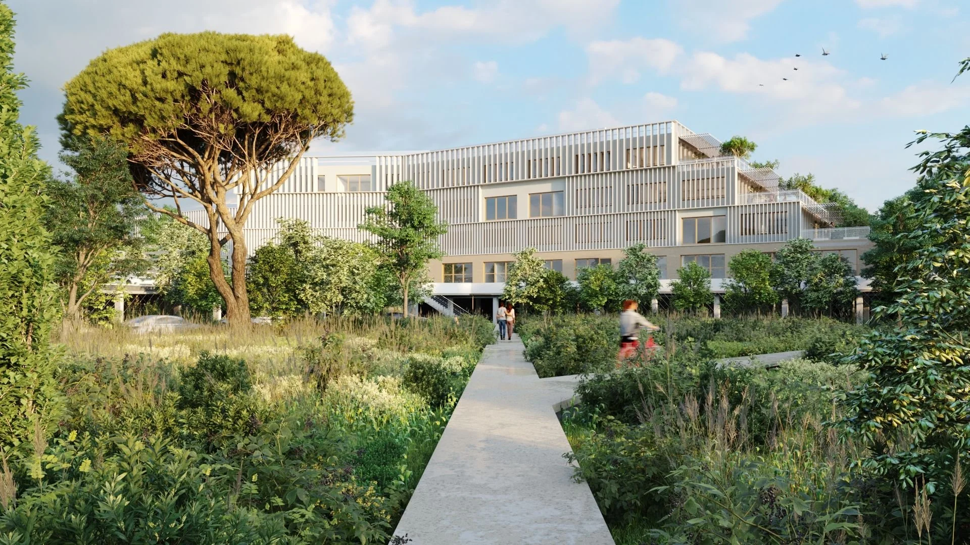 Pour impulser la revégétalisation de cet espace deux méthodes sont proposées et croisées. D’une part, des bosquets de reboisement Miyawaki dans lequel des jeunes plants sont plantés à une très forte densité pour proposer une installation d’arbres rapide et efficace en vue d’un effet sur le confort d’été local, sur la revitalisation des sols et sur une meilleure acceptation sociale du projet. Ainsi qu’un enfrichement accéléré à l’aide d’un semi composé d’une grande varié d’essences pionnières et locales qui permet d’apporter une diversité végétale, une frugalité d’entretien, des floraisons marquées et surtout un intérêt immédiat pour la biodiversité.