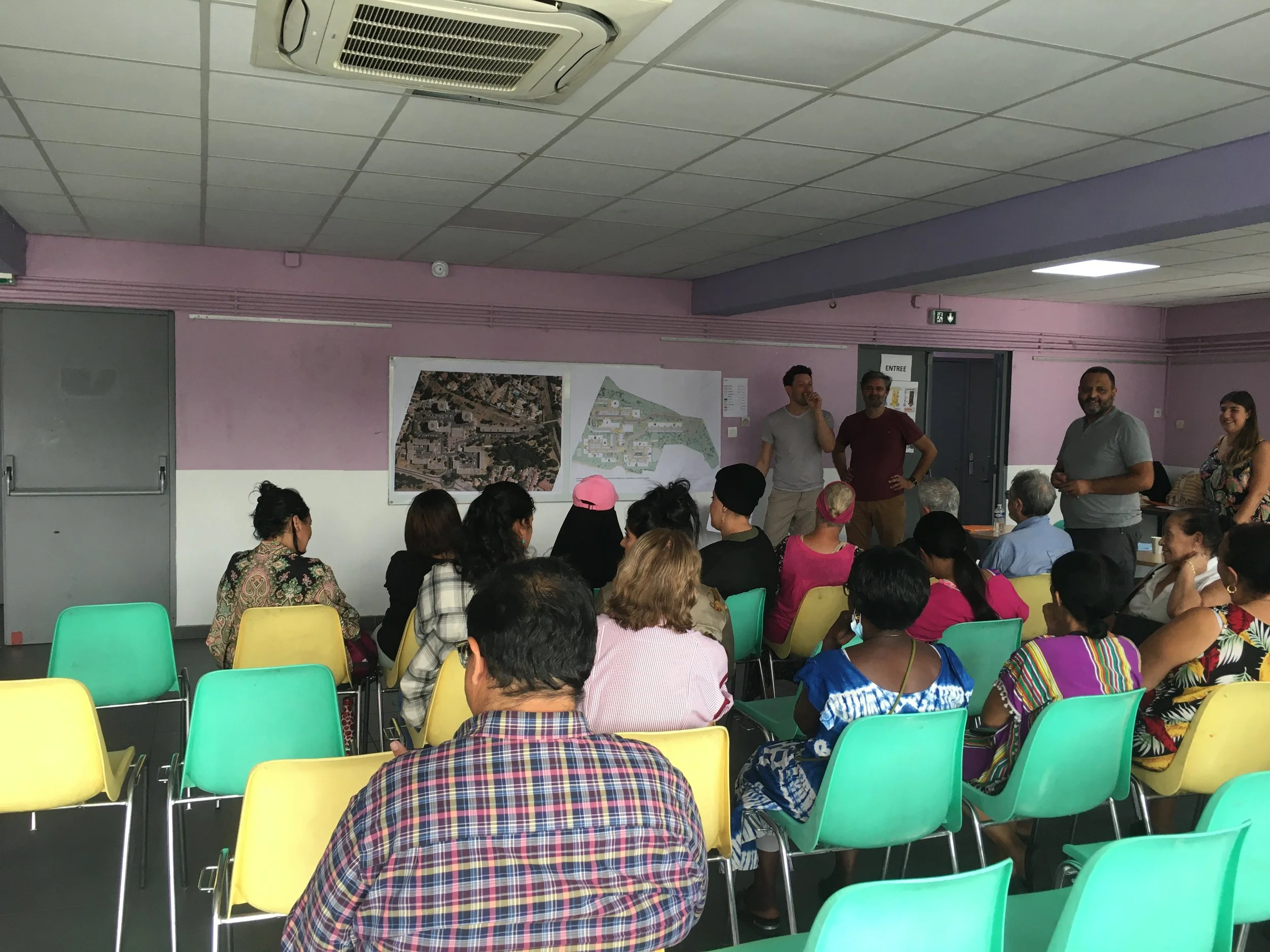 Construite dans les années 1970, la résidence constitue une entité urbaine à part entière. Ses espaces extérieurs sont marqués par une dégradation générale, tant dans le fonctionnement (manque de stationnement, difficulté d’accès pompiers et éboueurs…) que dans la qualité des espaces (très forte minéralité des espaces centraux, faible disponibilité d’espace piéton et de jeux…) qui pèsent sur le quotidien des habitants. La mission d’aménagement permet d’amorcer un renouvellement de la végétation, d’installer des continuités et un confort piéton, de requalifier la place centrale, d’améliorer le fonctionnement général et de valoriser les lisières (potagers et parcours d’agrément).